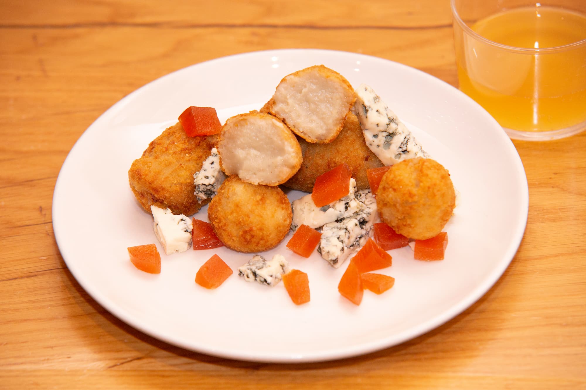 Si hace poco os desvelamos que nuestra croqueta más vendida era la de jamón, no nos equivocamos si os decimos que nuestra última creación , la croqueta de Cabrales con membrillo a la Sidra está causando una gran sensación entre nuestros clientes.
