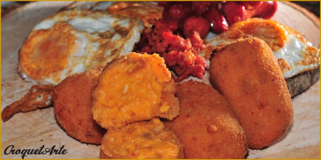 En CroquetArte nos encanta sorprenderte con sabores únicos que se convierten en verdaderas experiencias gastronómicas, y hoy estamos emocionados de presentarte nuestra última creación: la Croqueta de Chistorra con Huevos Fritos.